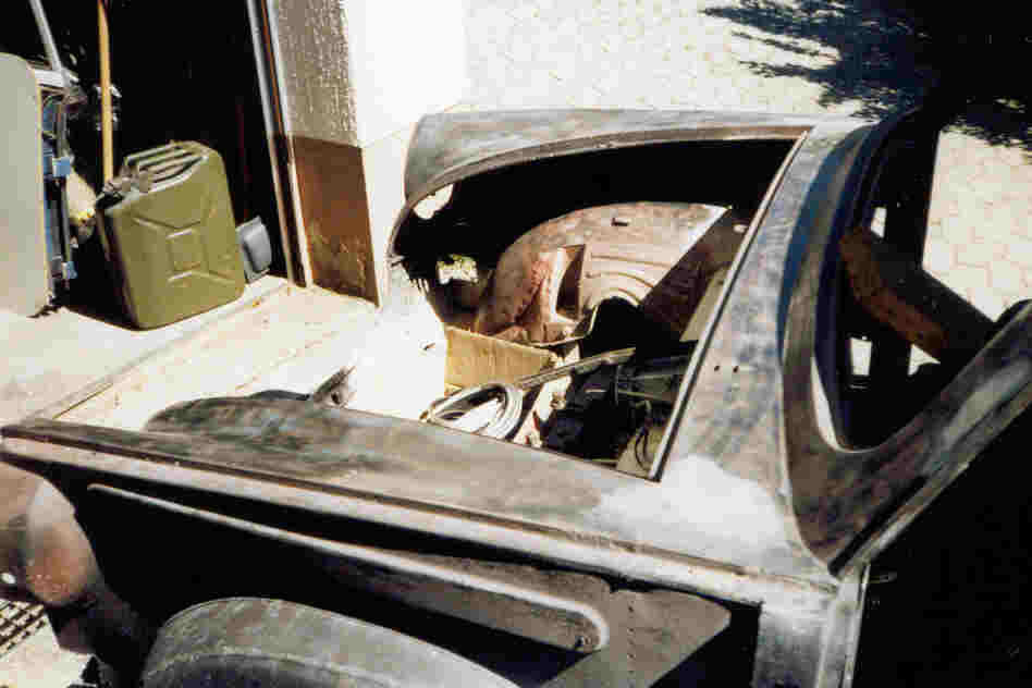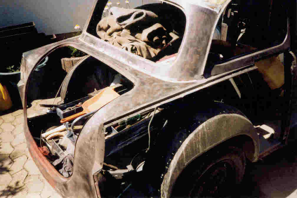 | Die Karosserie wird bis aufs Blech entlackt.