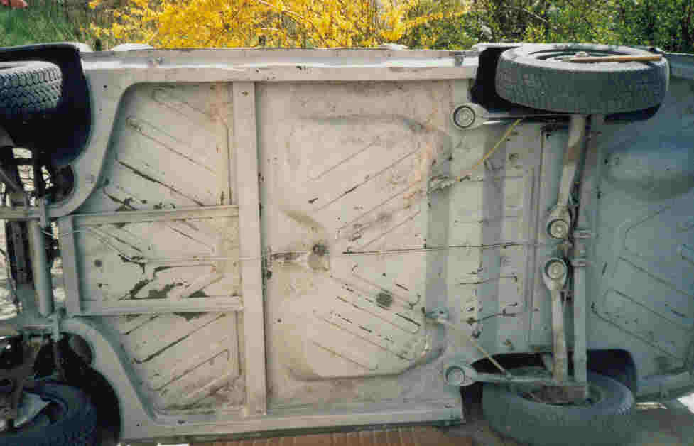| Der Unterboden ist rostig, aber nicht hoffnungslos. Nach dem Sandstrahlen sieht es doch ganz manierlich aus. Jetzt zeigen sich auch diverse Durchrostungen, die zugeschweisst werden müssen.