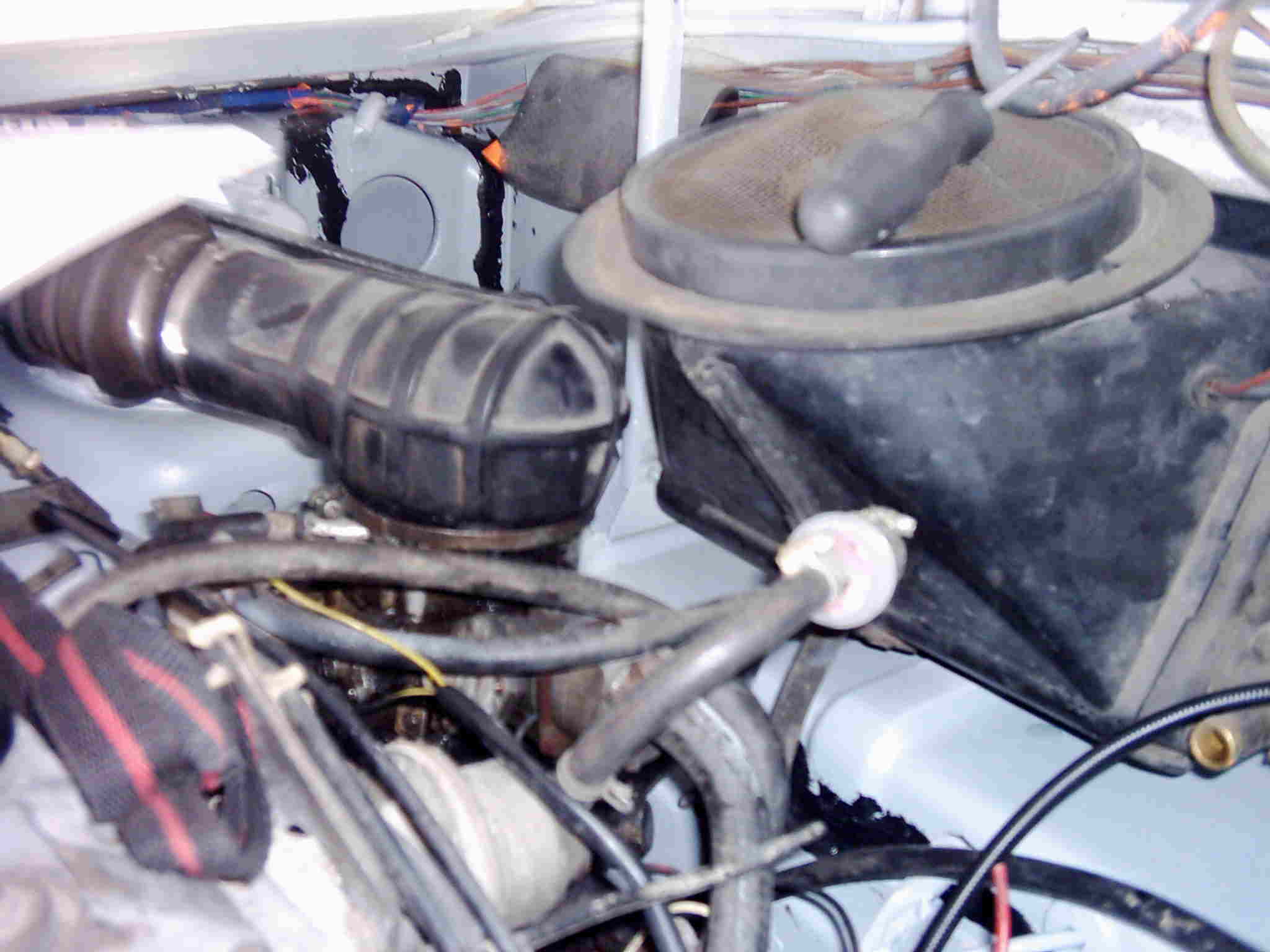 Auch am Luftansaug-Schlauch wird es eng, wenn man den Motor nach hinten neigt! Ausserdem verändert bringt die veränderte Motorneigung auch eine falsche Kraftstoffhöhe in der Schwimmerkammer mit sich, was zu (erheblich!) höherem Kraftstoffverbrauch führen kann! |