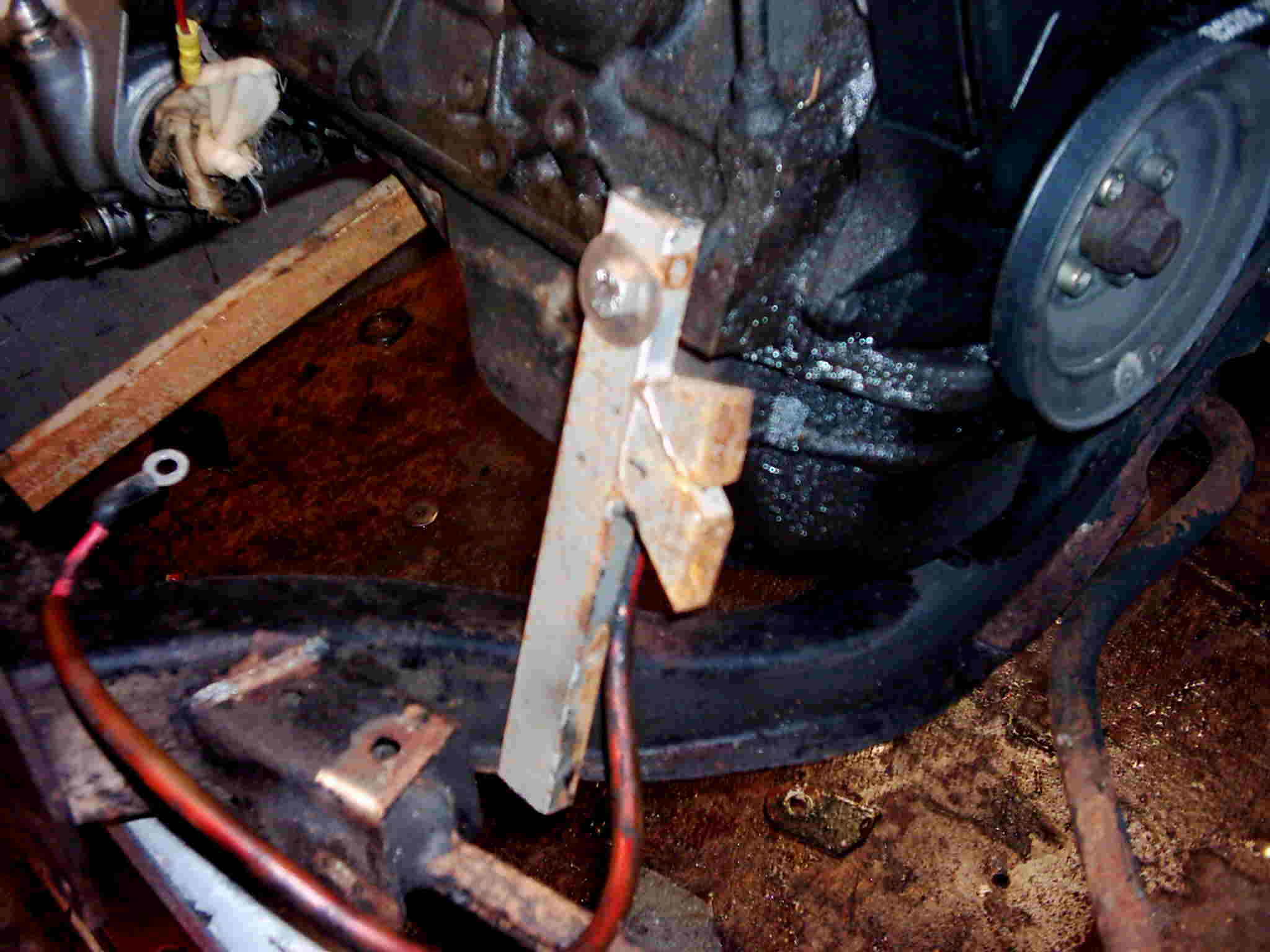 Vor Abtrennen der Getriebelager habe ich einige provisorische Stützen gefertigt, die mir später die ursprüngliche Position des Motors wieder vorgeben sollten. Dies ist unbedingt nötig, hat aber in meinem Falle nicht funktioniert. Hier sollte man sehr sorgfältig arbeiten, sonst fertigt man die Motor- und Getriebelager u.U. mehrmals neu, weil später nichts mehr passt. In meinem Fall war dies dreimal (!!) nötig. Die Neigung des Motors darf nicht unkontrolliert verändert werden, sonst kommt später der Vergaser mit dem Heizungs-Wärmetauscher in Kontakt oder der Krümmer stösst gegen den Kühler. Ich habe trotzdem den Motor etwas mehr nach hinten geneigt, damit die Antriebswellen-Abgänge tiefer liegen. Sonst verkanten sich die Antriebswellen möglicherweise im ausgefederten Zustand! |