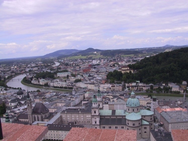 Sonntag, 05.06.2005 - km 80679 Nach einer SEHR ruhigen Nacht auf dem Platz werden wir morgens früh von einem Entan-Kampfgeschwader geweckt, das hinter uns in der Isar ziemlichen Lärm macht. Trotzdem dösen wir wieder ein und wundern uns, dass es schon 20 vor 9 ist, als wir aus dem Camper kriechen. Schnell noch frühstücken, einpacken und los. Über die BAB 8 geht es nach Salzburg, unterwegs noch für 7.60€ ein Pickerl kaufen und ein D-Schild. Gegen 12 sind wir in Salzburg und stellen fest, dass es gar nicht so einfach ist, mit Dethleffs am Haken einen Parkplatz zu finden. Nach einer Runde durch die Altstadt beschliessen wir, die Festung zu besichtigen. Sehr imposant, und ein sehr schöner Ausblick über die ganze Stadt! Der Aufstieg ist ziemlich anstrendend, wir gehen natürlich zu Fuss, mit der Aufzugs-Bahn kann ja jeder fahren! Wieder in der Stadt darf man natürlich nicht an einem handgezupften Stück Apfelstrudel vorbeigehen... Hmmm! Zügig geht es weiter auf die Tauernautobahn. Und schnell voran, in Austria dürfen mit Caravan am Haken 100 km/h gefahren werden. Bergauf-bergab durch ein idyllisches Alpenpanorama, durch den 6,5km langen Tauerntunnel und den 5,7km langen Katschbergtunnel. An der ÖMV-Station Eisenpratten wird nocheinmal getankt. Self-Service ist untersagt, so übernimmt der Tankwart die Arbeit. Der Kassierer ist begeistert und will ein Bild von unserem Gespann machen, aber die Batterien seiner Kamera sind ausgerechnet jetzt leer... (km 80960, 23.8l, 15.45€)