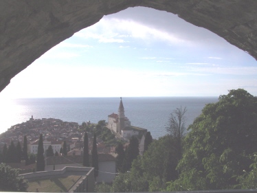 Mittwoch, 08.Juni 2005 - km 81525 Morgens um halb 5 wache ich auf, weil es an meinem Ohr "ssssssst" macht. Also Licht an und Moskito suchen... Marcus verschwindet in der Zeit zur Toilette. Den ersten Moskito finde ich sofort, "batsch", und auf dem Zeltstoff prangt ein grosser roter Fleck. Dieses Biest hat sich den Tod definitiv verdient! Es schwirrt aber noch ein zweiter hartnäckig herum. Aber nach einer Weile ist auch der zweite und letzte gefasst. Nach einem gemütlichen Frühstück legen wir uns an den Strand und planen die weitere Route. Nachmittags brechen wir nochmal auf, um die slowenischen Orte Koper und Piran zu besichtigen. Koper ist eine kleine, mittelalterliche Stadt, mit vielen engen Gassen und etwas verfallen. Eben so, wie es vor 50 oder 100 Jahren gewesen sein dürfte. Piran ist ähnlich, aber eindeutig touristisiert und autotechnisch eine Katastrophe. Daher muss man bezahlen, um in die Stadt fahren zu dürfen. Hoch über der Stadt stehen Türme als Teil einer Festung, von der aus man einen eindrucksvollen Blick über Piran und die Umgebung bis nach Trieste hat. Der Abend wirft ein sehr schönes, schräges Licht über das Meer in die Stadt, so dass man gar nicht weiss, in welches der unzähligen Cafés oder Restaurants man sich setzen soll. Zurück in Canegra räumen wir nach dem Kochen noch auf, weil es am Morgen ja weitergehen soll.
