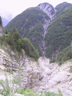 Montag, 06.Juni 2005 - km 80979 Um 0700 wird aufgewacht. Da man hier zusätzlich zur teuren Platzgebühr Duschmarken für Warmwasser braucht, duschen wir aus Prinzip kalt. Aber ich habe Glück: Meine Dusche wird auch so nach einigen Minuten warm! Danach frühstücken wir gemütlich: Marcus will mich glaube ich für die warme Dusche vergiften und stellt mir Handwaschpaste statt Margarine auf den Tisch. Ich habe es aber gemerkt :-) Um 0915 geht es weiter: wieder auf die A10, durch Villach, ein Stück durch Italien und über den Passo di Predil mitten durch die Karawanken. Das türkisblaue Wasser im Lago di Predil und in den Bächen fasziniert mich unglaublich. Es erscheint schon fast wie in einem Märchen!