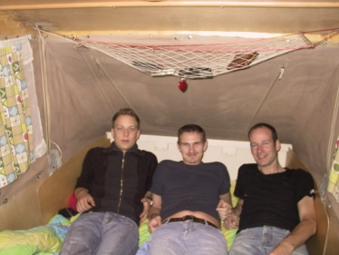 Freitag, 10.Juni 2005 - km 81794 Andrej kommt zu uns zum "Autocamp Jeica", dem Platz mit dem unausprechlichen Namen. Da das Wetter nicht so berauschend und eher kühl ist, fahren wir alle zusammen zum Aquarius Aqualand, einem neu gebauten Erlebnisbad in Ljubljana. Andrej muss von 1500 - 1800 arbeiten, in dieser Zeit gehen wir einkaufen und suchen erneut die Gastankstelle. Diesmal mit Erfolg: Für 100SIT/Liter tanken wir voll. Andrej kommt nochmal zu uns, zum Abendessen. Hier wird bewiesen, dass -wie im Dethleffs-Prospekt behauptet- , im Camper Platz für 3 erwachsene Personen ist. Danach treffen wir uns mit Freunden von ihm, um die Stadt unsicher zu machen.