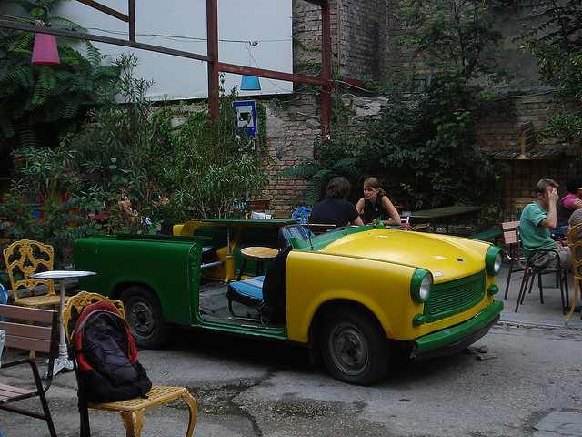 Donnerstag, 17.Septemer 2009 Nach Abholung weiterer bestellter Trabiteile verabschieden wir uns von Bálint und fahren weiter Richtung Heimat, in meine Lieblingsstadt Budapest. Es regnet schon wieder, und das soll auch den ganzen Tag so bleiben. Obligatorisch ist das Kafehaz am Ferenciek tere wie immer wenn wir in Budapest sind die erste Anlaufstelle, wo es erstmal eine Tasse Kaffee und ein oder mehr Stücke Kuchen als Willkommen gibt. Das geht bei jedem Wetter. Nicht nur wegen dem Wetter gehen wir anschliessend ins Thermalbad, und zwar ins frisch renovierte Kiralyfürdö, ein eher kleineres Bad mit Thermalbecken unter einer grossen Kuppel, mehreren Becken verschiedener Wassertemperaturen rundherum und einem Dampfbad und einer Trockensauna. Aber ganz nett.