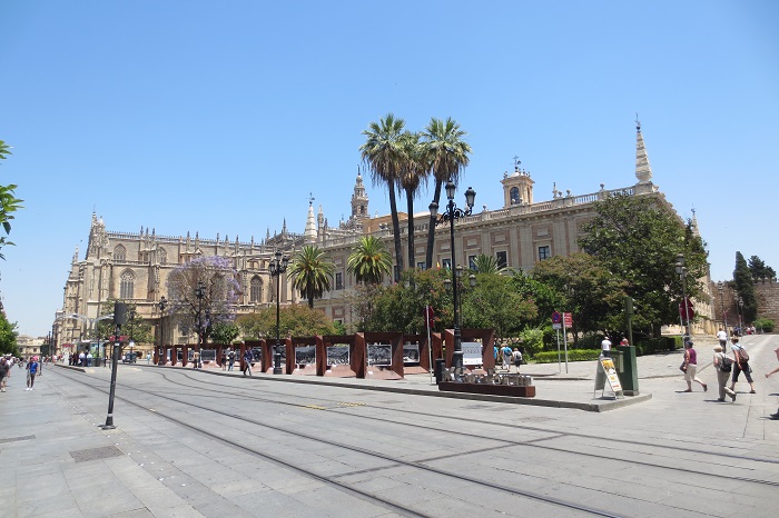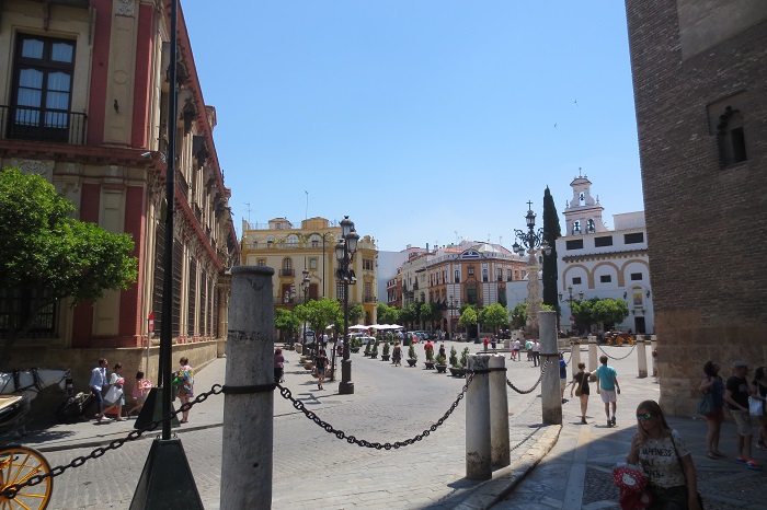 Die Stadtbesichtigung von Sevilla steht auf dem Plan. Es ist ziemlich heiss, an die 40 Grad, von daher hält sich meine Motivation in Grenzen.